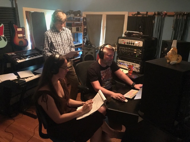Robin Bier and Graham Bier (Les Canards Chantants) and Kai-Bau-Madsen (sound engineer) during the July 2017 recording session of select fugues from Atalanta fugiens for the digital edition.